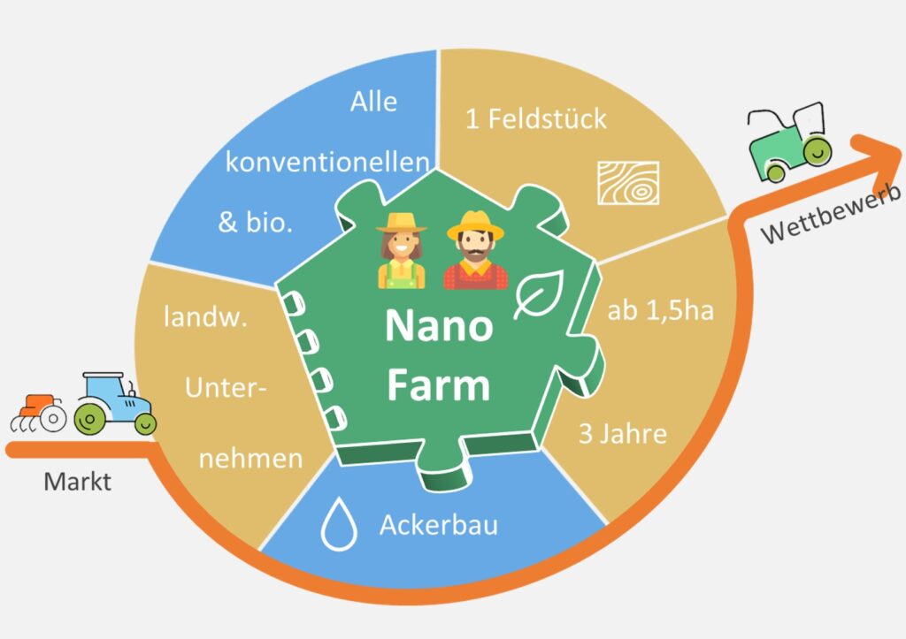 Aus der Vielfalt an Lösungen – bäuerliche Nachbarschaftshilfe, Gerätegemeinschaften, lw. Dienstleister, betriebsüber-greifender Fuhrpark, betriebliche Integration, etc. – knüpft Nano-Farm von lw Dienstleistung bis betrieblicher Integration an.